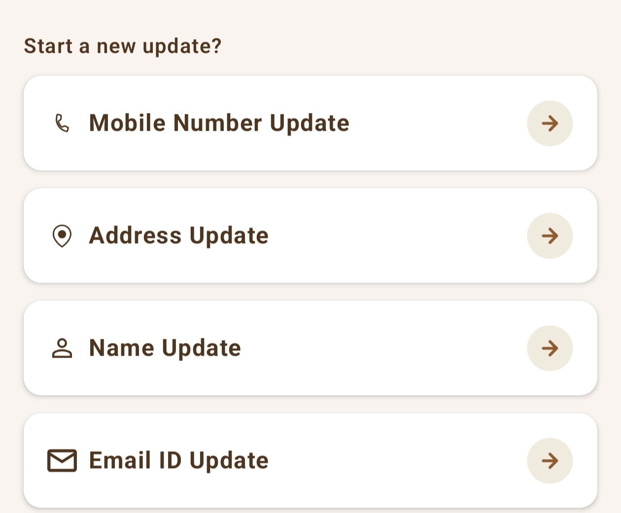 अब आप जिस जानकारी को अपडेट करना चाहते हैं (जैसे – नाम, पता, जन्मतिथि आदि ) को चुनें।